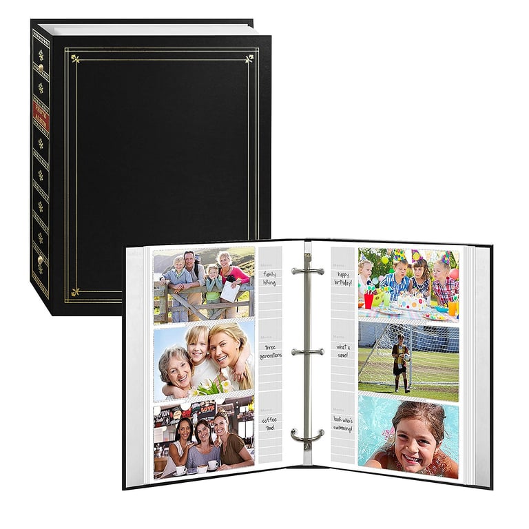 Pioneer Albums® 3-ring Black album Bi-Directional w/memo area for 4x6/5x7/8x10 photos by Pioneer® —