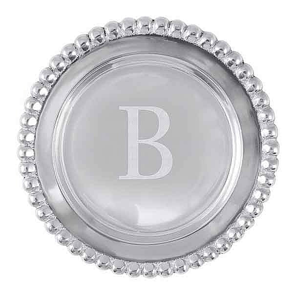 Back to results Scroll Items 1627 of 11087 Main view Gift Packaging Product Details Mariposa® The original BEADED WINE PLATE Engraved -B- by Mariposa® — The "B" engraved BEADED WINE PLATE was designed by Michael Updike and hand-crafted by Mariposa. Whatever the dreams of your friends and loved ones, Mariposa shining trays and frames are an easy way to send a personalized message—an engraved reminder of your caring and understanding. Important Note: Mariposa items are hand engraved. Your piece may differ slightly from the photo. SendAFrame stocks the entire Mariposa® picture frame line - and related Brand and Design styled items like this. Shop the entire collection: Mariposa® Design Collection. Always shipped in a Mariposa beautiful signature box - makes gifting easy! The original BEADED WINE PLATE Engraved -B- by Mariposa® Mariposa® WINTER CELEBRATION Savings - Buy More / Save More * Add this item to your cart for the full details of this promotion. Conditions may apply. Model #808813162140 List $48.00 You pay $44.95 In stock Can be shipped today [?] Your Price Match is Active Your request for a price of $0.00 for a minimum quantity of has been accepted. You have [time] left to purchase this item for $0.00 instead of $44.95 each. Find a Lower Price? We BEAT All Authorized Retailers [?] FEATURESMaterial:AluminumFinish:SilverOccasion:Birthday, Congratulations, Corporate gifts, Employee honors, Group Events + Parties, Friendship, Good luck, Graduation, Inspirational, Military Honors, Mother`s Day, Retirement, Team & coach gifts, Thank-Motivate-Reward, WeddingStyle:Contemporary, Eco-Friendly-Recycled, Modern, Santa Fe, Shabby Chic, Sports & leisure, Words & whimsyBrand:Mariposa®Display Type:not applicable n/a Approx. Overall Dimensions:5 1/4"x1/2"x5 1/4" This item ships in its own box SHARE THIS ITEM Share on Facebook