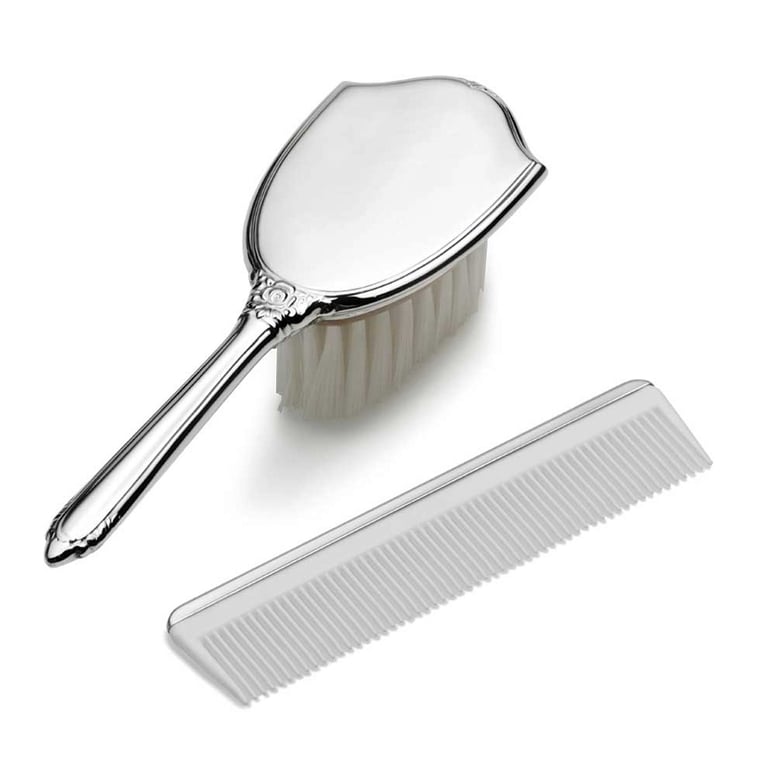 Product Details Empire Silver® Heirloom quality Sterling Silver BRUSH and COMB set PLAIN by Empire Silver® — Crafted in gorgeous .925 fine sterling silver, this is a classic designed brush and matching comb set. Brush top and handle as well as comb top are fine sterling; brush has nylon bristles and comb is virgin acrylic. A wonderful choice for your special, new baby gift. Ships in special set gift-box. Hand crafted in the USA by the Empire Silver Company®, arguably America's finest silversmith house. Heirloom quality Sterling Silver BRUSH and COMB set PLAIN by Empire Silver® Model #781642001470 List $275.00 You pay $208.95 This item is currently out of stock and we do not have an expected date at the present time. click here to be automatically notified when it comes back in stock or email merchandising@sendaframe.com for availability information. You can place this item in your shopping cart. It will be added to the 'saved for later' section. Your Price Match is Active Your request for a price of $0.00 for a minimum quantity of has been accepted. You have [time] left to purchase this item for $0.00 instead of $208.95 each. Find a Lower Price? We BEAT All Authorized Retailers [?] FEATURESMaterial:Sterling Silver (fine)Finish:SilverOccasion:Baby shower, Baptism + Christening, New babyStyle:Child`s play, Classic, TraditionalBrand:Empire Silver®Display Type:not applicable n/a Approx. Overall Dimensions:6"x1 7/8" This item ships in its own box SHARE THIS ITEM Share on Facebook