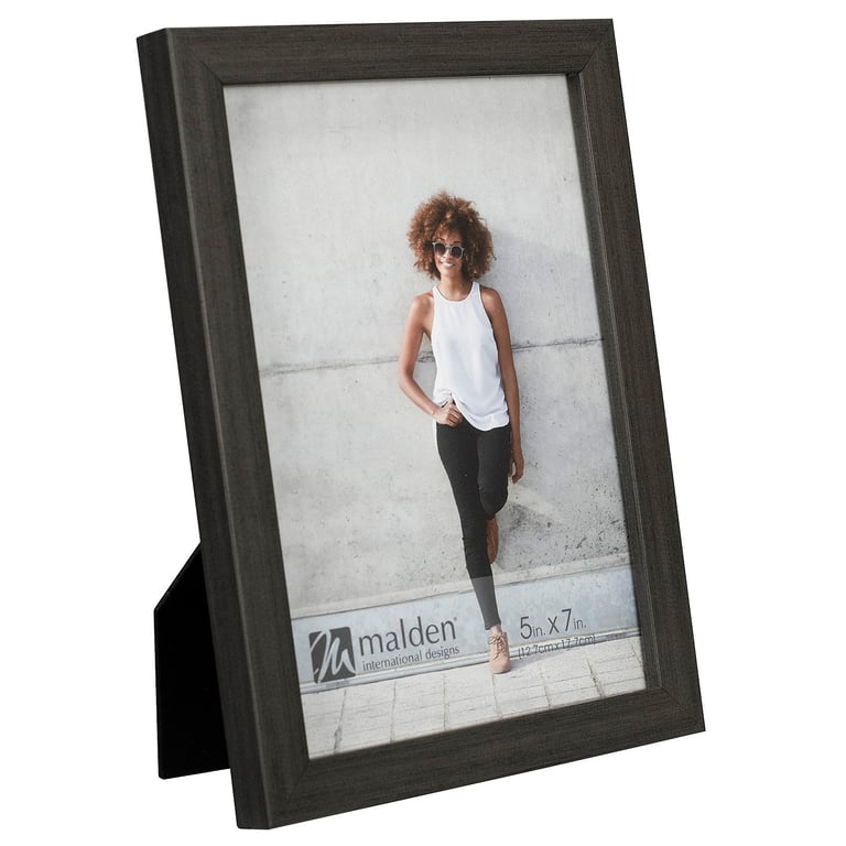 Main view Product Details Malden Designs® Charcoal wood CONCEPTS 5x7 by Malden Designs® — This is a contemporary piece crafted in charcoal stained wood.Square edged corners, narrow stylish moulding, and fine grain detail, it has a quality look and feel at a value price.Has an easel back for tabletop display. Wall mounting attachments also included for easy hanging. Glare resistant glass lens.Produced by Malden Designs® for SendAFrame. Charcoal wood CONCEPTS 5x7 by Malden Designs® Model #096287169295 List $11.00 You pay $8.95 In stock Ships next business day [?] Your Price Match is Active Your request for a price of $0.00 for a minimum quantity of has been accepted. You have [time] left to purchase this item for $0.00 instead of $8.95 each. Find a Lower Price? We BEAT All Authorized Retailers [?] FEATURESDisplays:5"x7"Material:Wood (mdf/engineered)Finish:Black, Gray/CharcoalOccasion:Business & office, Corporate gifts, Craft Projects, Group Events + Parties, Friendship, Home decorating, Team & coach gifts, Thank-Motivate-Reward, Weekend Host GiftsStyle:Classic, Contemporary, Minimal, TraditionalOrientation:BothBrand:Malden Designs®Display Type:Desktop or Wall Approx. Overall Dimensions:6"x8 1/8"x1" This item ships in its own box SHARE THIS ITEM Share on Facebook