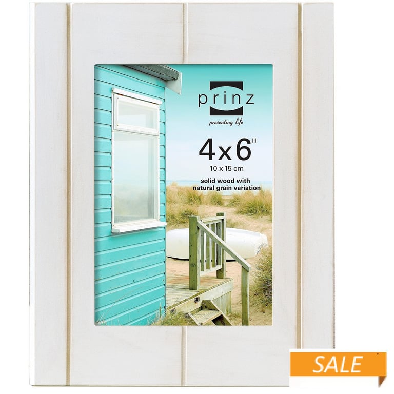 Product Details Prinz® frames & albums SEASIDE white-wash wood 4x6 frame by Prinz® — SEASIDE is a rustic, distressed wood style in soothing white-wash wood.Dual easel back permits horizontal or vertical display. Wall hooks are included. Glare resistant glass lens.Produced by Prinz USA®. SEASIDE white-wash wood 4x6 frame by Prinz® Model #086981763516 List $14.50 You pay $7.90 In stock Your Price Match is Active Your request for a price of $0.00 for a minimum quantity of has been accepted. You have [time] left to purchase this item for $0.00 instead of $7.90 each. Find a Lower Price? We BEAT All Authorized Retailers [?] FEATURESDisplays:4"x6"Material:Wood (full grain)Finish:White, Ivory/CreamOccasion:Home decorating, Weekend Host Gifts, Thank-Motivate-Reward, Celebrating TravelsStyle:Rustic/Lodge, Tropical, Distressed - Weathered, Coastal, Nautical & ShoreOrientation:BothBrand:Prinz® frames & albumsDisplay Type:Desktop or Wall Approx. Overall Dimensions:6 3/4"x8 3/4"x5/8" This item ships in its own box SHARE THIS ITEM Share on Facebook