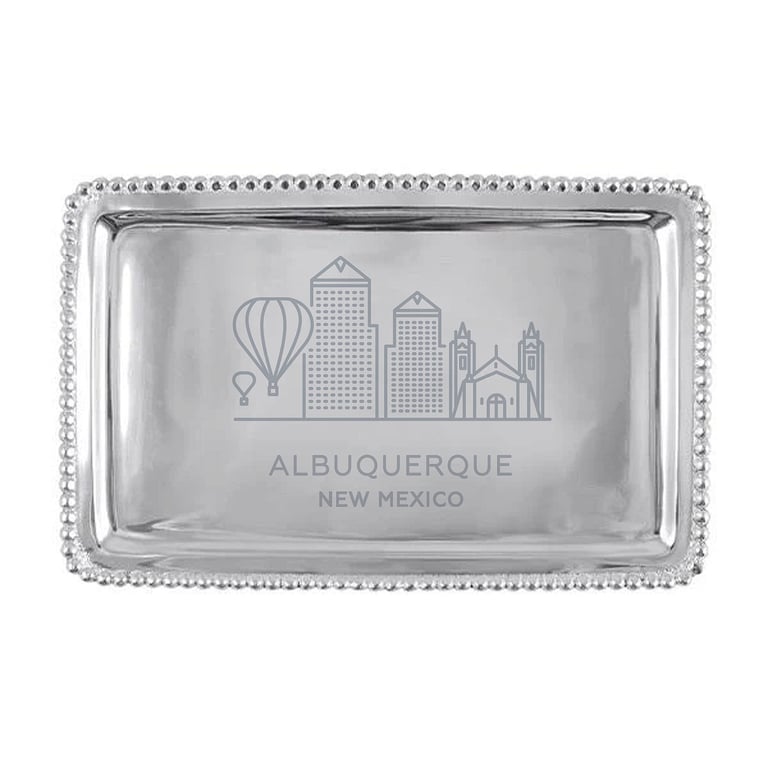 Main view Product Details Mariposa® The ALBUQUERQUE NM CITYSCAPE BEADED 7in BUFFET TRAY crafted by Mariposa® — The BEADED BUFFET TRAY with a CITYSCAPES special ALBUQUERQUE New Mexico hand engraving. Perfectly sized to fit a check, making this a great way to jazz up a monetary gift. Important Note: Mariposa items are hand engraved. Your piece may differ slightly from the photo. We stock ALL the Mariposa Cityscape styles. Click here to goto a directory of cities. Want to order cityscape on another Mariposa style? Ask our customer service LIVE CHAT rep for assistance. We can get special orders from Mariposa in 2-3 days. The ALBUQUERQUE NM CITYSCAPE BEADED 7in BUFFET TRAY crafted by Mariposa® Mariposa® BLACK FRIDAY CELEBRATION Savings - Buy More / Save More * Add this item to your cart for the full details of this promotion. Conditions may apply. Model #808813779003 $38.95 This item is currently out of stock and we do not have an expected date at the present time. click here to be automatically notified when it comes back in stock or email merchandising@sendaframe.com for availability information. You can place this item in your shopping cart. It will be added to the 'saved for later' section. Your Price Match is Active Your request for a price of $0.00 for a minimum quantity of has been accepted. You have [time] left to purchase this item for $0.00 instead of $38.95 each. Find a Lower Price? We BEAT All Authorized Retailers [?] Approx. Overall Dimensions:6 3/4"x3 3/4"x1/2" This item ships in its own box SHARE THIS ITEM Share on Facebook