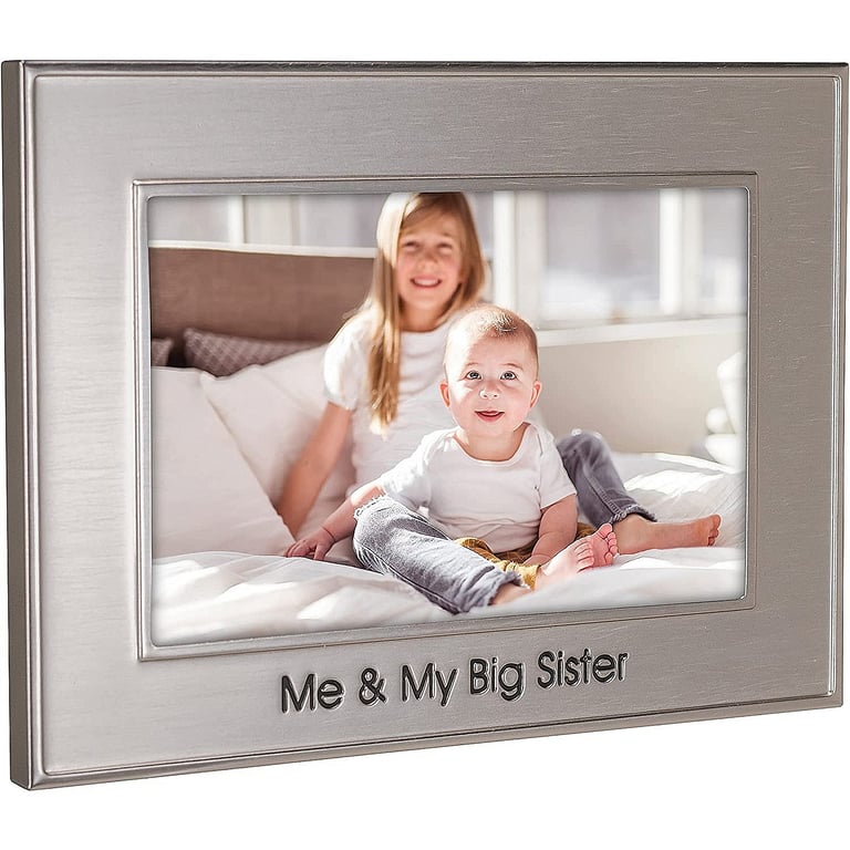 Main view Product Details Malden Designs® ME and MY BIG SISTER Engraved 6x4 frame by Malden® — Celebrate your BIG SISTER with this engraved silver Me & My Big Sister frame.Features a nice hardboard backing, easel back for landscape (horizontal) tabletop display, wall mounts and glare resistant glass lens. By Malden®. ME and MY BIG SISTER Engraved 6x4 frame by Malden® Model #096287183390 List $17.00 You pay $13.95 In stock Ships next business day [?] Your Price Match is Active Your request for a price of $0.00 for a minimum quantity of has been accepted. You have [time] left to purchase this item for $0.00 instead of $13.95 each. Find a Lower Price? We BEAT All Authorized Retailers [?] FEATURESDisplays:4"x6"Material:Metallic (all)Finish:SilverOccasion:Baby shower, Birthday, Birthday (child), Baptism + Christening, New babyStyle:Child`s play, Contemporary, Words & whimsy, Sentiments | ready madeOrientation:Horizontal OnlyBrand:Malden Designs®Display Type:Desktop or Wall Approx. Overall Dimensions:8"x7 1/2"x1" This item ships in its own box SHARE THIS ITEM Share on Facebook