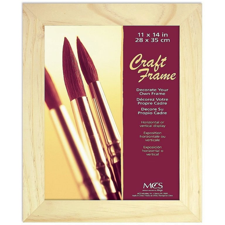 Product Details MCS® Bevelled unfinished craft 11x14 natural pine frame — For collectors and craft projects, this beautifully made frame is simple and natural.Tailored corners and nicely matched pine hardwood.Recessed wall mounts included for easy hanging. Glare resistant glass lens. Moulding edge is an easy to work with wide 1¾".By MCS®. Bevelled unfinished craft 11x14 natural pine frame Model #044021581025 List $25.00 You pay $20.95 This item IS in stock and can be expected to ship 01/30/2026 In stock Your Price Match is Active Your request for a price of $0.00 for a minimum quantity of has been accepted. You have [time] left to purchase this item for $0.00 instead of $20.95 each. Find a Lower Price? We BEAT All Authorized Retailers [?] FEATURESDisplays:11"x14"Material:Wood (full grain)Finish:NaturalOccasion:Birthday (child), Home decorating, Craft ProjectsStyle:Classic, Minimal, TraditionalOrientation:BothBrand:MCS®Display Type:Wall Only Approx. Overall Dimensions:14 1/2"x17 1/2"x7/8" SHARE THIS ITEM Share on Facebook