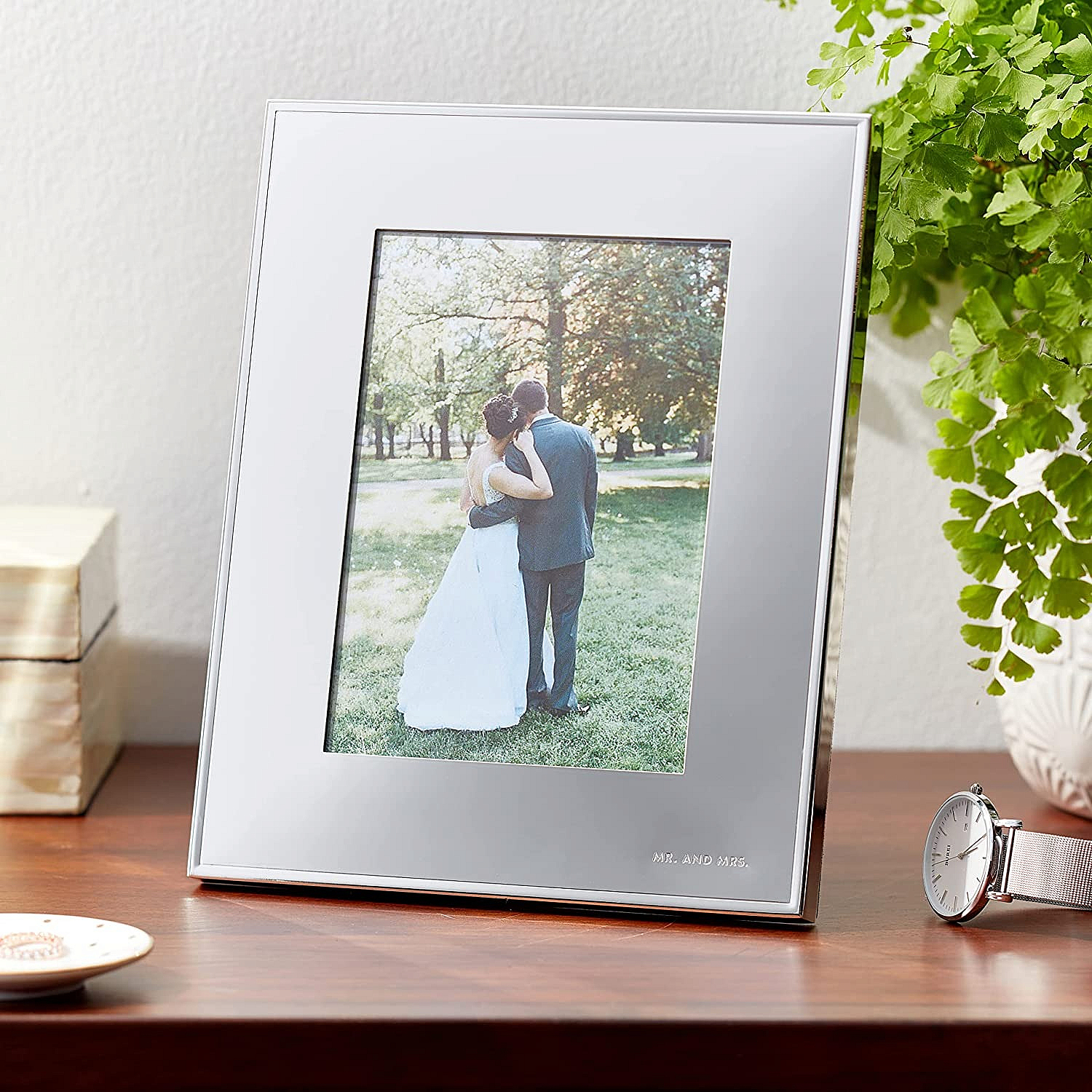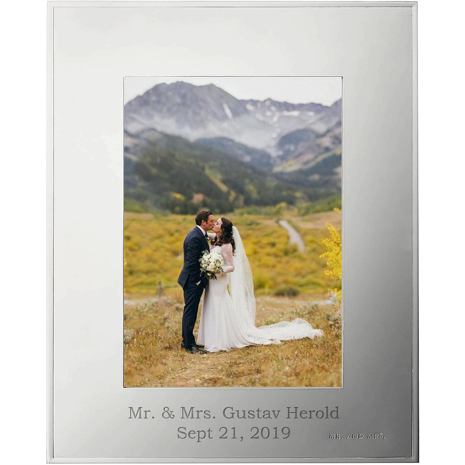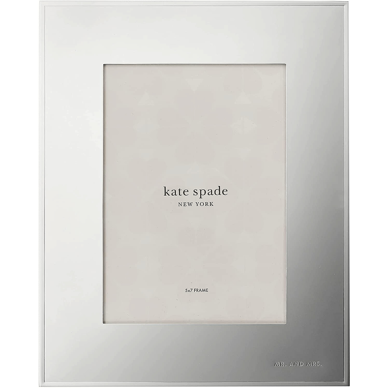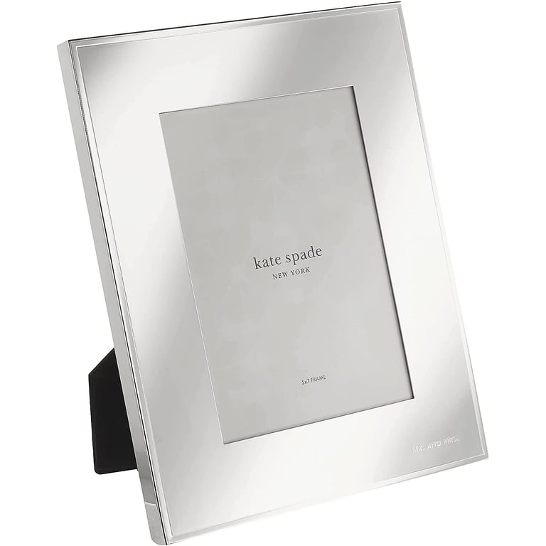 Main view Gift Box (samples) Product Details Lenox® DARLING POINT MR. AND MRS. frame for 5x7 prints by kate spade new york® — Polished to a lustrous mirror-like finish, this elegant and simple frame is crafted in silver-plate, making your most magical moments shine even more. "Mr. & Mrs." engraved in the bottom right corner. Frame your favorite photo from that special day, or a wonderful memory from your honeymoon. Crafted of silver-plated metal Holds a 5" x 7" photo Overall size 8¼"x10" Part of the kate spade DARLING POINT design series SendAFrame proudly carries the entire Kate Spade® photo collection: Kate Spade® Collection DARLING POINT MR. AND MRS. frame for 5x7 prints by kate spade new york® Model #882864172730 List $70.00 You pay $63.95 This item IS in stock and can be expected to ship 01/27/2026 In stock Your Price Match is Active Your request for a price of $0.00 for a minimum quantity of has been accepted. You have [time] left to purchase this item for $0.00 instead of $63.95 each. Find a Lower Price? We BEAT All Authorized Retailers [?] FEATURESDisplays:5"x7"Material:SilverplateFinish:Silver, MirrorOccasion:Anniversary, Engagement, Romantic, Valentine`s Day, WeddingStyle:Contemporary, Preppy, RomanticOrientation:Vertical OnlyBrand:Lenox®Display Type:Wall Only Approx. Overall Dimensions:8 1/4"x10" This item ships in its own box SHARE THIS ITEM Share on Facebook