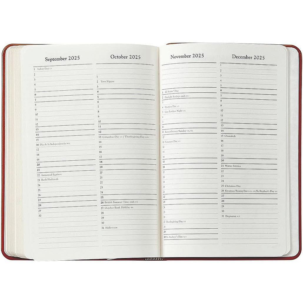 Back to results Scroll Items 2172 of 11070 Family Members 5.50"x8" - 8in 2026 BLACK GOATSKIN Daily Journal $110.00 5.50"x8" - 8in 2026 AZALEA GOATSKIN Daily Journal $86.00 5.50"x8" - 8in KELLY-GREEN GOATSKIN Daily Journal $110.00 5.50"x8" - 8in ORANGE GOATSKIN Daily Journal $110.00 5.50"x8" - 8in ROBINS-EGG-BLUE GOATSKIN Daily Journal $110.00 5.50"x8" - 8in ROSE-GOLD GOATSKIN Daily Journal $110.00 5.50"x8" - 8in WHITE-GOLD GOATSKIN Daily Journal $110.00 Main view Product Details Graphic Image® 2026 8in ROYAL-BLUE Daily Journal GOATSKIN Leather by Graphic Image™ — The 8-inch planner is a journal and diary in one, offering day-at-a-view appointment pages. Also included in this 416 page book are calendar, appointment and resource pages. Size: 5½x8", 416 pages Genuine luxe full-grain leather Week and Day-at-a-view pages Smyth sewn for strength and longevity Cream-white, acid-free paper with gold gilt edges Date is pre-stamped in gold Personalization is available - click the link Personalize This Item Individually bench-crafted in America Makes a great corporate gift. click the link request a quote for quantity pricing. Calendar & appointment pages include: Previous, current and next year's calendars Month-at-a-View appointment pages Next-year-planning pages Includes information pages on: U.S. and International holidays Personal birthday and anniversary record Gifts appropriate for selected anniversaries Zodiac dates and symbols Birthstone and flower for each month Personal expense summary Personal telephone directory U.S. and Canadian area codes, International dialing codes Toll-free numbers for airlines, railroads, car rentals, courier services, lost credit cards, hotels, motels, and resorts United States and International road and air distances United States and International weather World Times Zones International travel information Currency exchange rates Foreign embassies in the United States Weight and measure equivalents and conversion By the Graphic Image® Company. To view the complete collections, click: Graphic Image® photo albums and books.. 2026 8in ROYAL-BLUE Daily Journal GOATSKIN Leather by Graphic Image™ Model #611959774357 $110.00 This item IS in stock and can be expected to ship 01/15/2026 Your Price Match is Active Your request for a price of $0.00 for a minimum quantity of has been accepted. You have [time] left to purchase this item for $0.00 instead of $110.00 each. Find a Lower Price? We BEAT All Authorized Retailers [?] FEATURESDisplays:5.50"x8"Material:Leather (fine)Finish:BlueOccasion:Back to School, Business & office, Christmas, Corporate gifts, Employee honors, Friendship, Good luck, Graduation, Hanukkah, Thank-Motivate-RewardStyle:Classic, Traditional, Sophisticated, Contemporary, Bold ColorsBrand:Graphic Image®Display Type:not applicable n/a Approx. Overall Dimensions:5 1/2"x8" This item ships in its own box SHARE THIS ITEM Share on Facebook