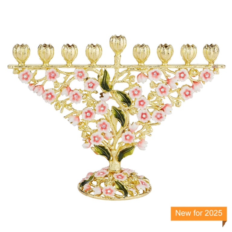 Main view Elegantly gift boxed (sample) Product Details Olivia Riegel The BELLA MENORAH by Olivia Riegel® — Delightful floral pattern in gold finished pewter, the BELLA MENORAH is pink and green hued hand-enameling and hand-set with European crystals. Tarnish resistant. Signature luxury gift box included. An incredible original design from the Olivia Riegel® collection. SendAFrame proudly carries the entire photo frame Olivia Riegel® collection, and related home decor pieces like this Chanukah Menorah. The BELLA MENORAH by Olivia Riegel® OLIVIA RIEGEL® HOLIDAY CELEBRATION SAVINGS - Buy More / Save More * Add this item to your cart for the full details of this promotion. Conditions may apply. Model #850054966346 $300.00 This item IS in stock and can be expected to ship 12/17/2025 Your Price Match is Active Your request for a price of $0.00 for a minimum quantity of has been accepted. You have [time] left to purchase this item for $0.00 instead of $300.00 each. Find a Lower Price? We BEAT All Authorized Retailers [?] Approx. Overall Dimensions:8 1/2"x6 1/4"x3" This item ships in its own box SHARE THIS ITEM Share on Facebook