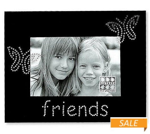 Product Details SIXTREES® GLASS Expressions BUTTERFLY FRIENDS 6x4 frame — BUTTERFLY FRIENDS Special bevelled black glass with set rhinestones creates an adorable piece to cherish your friendship.Nice hardboard backing for tabletop display. Glare resistant glass lens.Crafted by Sixtrees®. GLASS Expressions BUTTERFLY FRIENDS 6x4 frame Model #783729161831 List $16.00 You pay $7.90 In stock Your Price Match is Active Your request for a price of $0.00 for a minimum quantity of has been accepted. You have [time] left to purchase this item for $0.00 instead of $7.90 each. Find a Lower Price? We BEAT All Authorized Retailers [?] FEATURESDisplays:4"x6"Material:GlassOccasion:Birthday, Group Events + Parties, Friendship, Sweet 16, Thank-Motivate-RewardStyle:Contemporary, Preppy, Teens & tweens, Words & whimsyOrientation:Horizontal OnlyBrand:SIXTREES®Display Type:Desktop Only This item ships in its own box SHARE THIS ITEM Share on Facebook