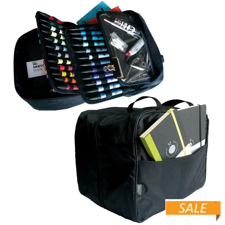 Product Details Prat Paris® Albums The Multi-Use Large Capacity MARKERS CASE by Prat-Paris® — Recommended for serious artists and graphic design professionals Black water-resistant nylon cover Comfortable reinforced rubber handles Double action zipper Large outside zippered pocket 2 removable leaves with elastic straps for markers 1 removable multi-use leave with a large transparent zippered front pocket and 2 mesh pockets on the other side 2 elastic straps in the bottom to hold a sketchbook or a notepad Holds up to 48 markers, a 7" x 10" sketchbook, ink refills and nibs, and lots more! Sold unfilled. Pencils / markers shown are not included - for display purposes only To view the complete Prat® collection, visit: Prat® Albums. SendAFrame fully stocks, factory fresh, the entire PRAT Paris® photo album line - and related items like this. The Multi-Use Large Capacity MARKERS CASE by Prat-Paris® Model #701002031473 List $52.00 You pay $24.90 In stock Ships next business day [?] Your Price Match is Active Your request for a price of $0.00 for a minimum quantity of has been accepted. You have [time] left to purchase this item for $0.00 instead of $24.90 each. Find a Lower Price? We BEAT All Authorized Retailers [?] Approx. Overall Dimensions:11"x8"x7 3/4" SHARE THIS ITEM Share on Facebook