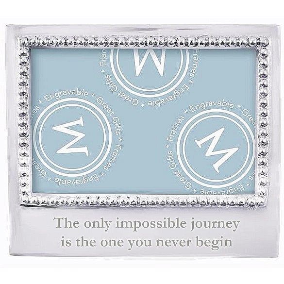 Main view Personalize Gifts for every occasion Product Details Mariposa® THE ONLY IMPOSSIBLE JOURNEY... Statement 6x4 frame crafted by Mariposa® — The only impossible journey is the one you never begin The Statement frame for a 6"x4" photo, engraved with this inspiration life message. SendAFrame stocks the entire Mariposa® picture frame collection. Shop the entire collection: Mariposa® Design Collection Important Note: Mariposa items are hand engraved. Your piece may differ slightly from the photo. THE ONLY IMPOSSIBLE JOURNEY... Statement 6x4 frame crafted by Mariposa® Mariposa® FALL CELEBRATION Savings - Buy More / Save More * Add this item to your cart for the full details of this promotion. Conditions may apply. Model #808813888125 $56.00 only 5 left, order soon. In stock Can be shipped today [?] Your Price Match is Active Your request for a price of $0.00 for a minimum quantity of has been accepted. You have [time] left to purchase this item for $0.00 instead of $56.00 each. Find a Lower Price? We BEAT All Authorized Retailers [?] Approx. Overall Dimensions:6 3/4"x5 3/4"x1" This item ships in its own box SHARE THIS ITEM Share on Facebook