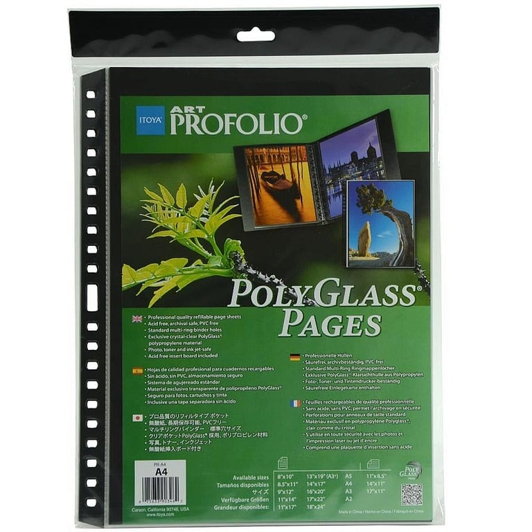 ITOYA's exclusive PolyGlass Pages are totally archival safe. Feature a thick gauge European-sourced acid free mounting board inside each sheet.