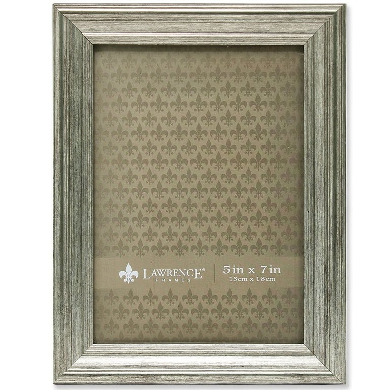 Main view Product Details Lawrence Frames® SUTTER Satin Silver composite wood 5x7 frame — High quality satin silver composite picture frame. Black velvet backing Vertical or horizontal tabletop display or can be hung on a wall with installed hangers Wipe clean with dry cloth, glass included Individually boxed By Lawrence® SUTTER Satin Silver composite wood 5x7 frame Model #751148068321 List $18.00 You pay $13.95 This item IS in stock and can be expected to ship 01/27/2026 In stock Your Price Match is Active Your request for a price of $0.00 for a minimum quantity of has been accepted. You have [time] left to purchase this item for $0.00 instead of $13.95 each. Find a Lower Price? We BEAT All Authorized Retailers [?] FEATURESDisplays:5"x7"Material:Wood (mdf/engineered)Finish:Gray/Charcoal, SilverOccasion:Business & office, Congratulations, Corporate gifts, Home decorating, Mother`s Day, Teacher gifts, Team & coach giftsStyle:Classic, TraditionalOrientation:BothBrand:Lawrence Frames®Display Type:Desktop or Wall This item ships in its own box SHARE THIS ITEM Share on Facebook