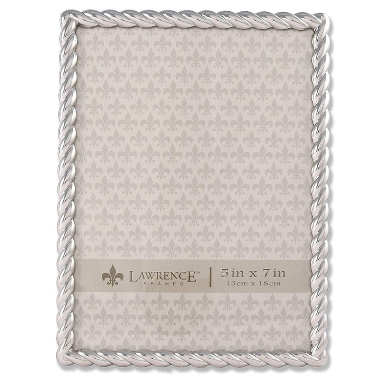 Main view Product Details Lawrence Frames® Silverplate ROPE BORDER 5x7 frame — Our brushed silver plate frame is nicely crafted with a beautiful rope trim.Attractively backed for wonderful desk appeal.Dual easel back for portrait or landscape tabletop display. Wall mounts for easy hanging. Glare resistant glass lens.By Lawrence Frames, fine frames for generations. Silverplate ROPE BORDER 5x7 frame Model #751148066150 List $29.50 You pay $22.95 This item IS in stock and can be expected to ship 01/30/2026 In stock Your Price Match is Active Your request for a price of $0.00 for a minimum quantity of has been accepted. You have [time] left to purchase this item for $0.00 instead of $22.95 each. Find a Lower Price? We BEAT All Authorized Retailers [?] FEATURESDisplays:5"x7"Material:SilverplateFinish:SilverOccasion:Anniversary, Birthday, Good luck, Mother`s Day, Retirement, Romantic, Teacher gifts, Thank-Motivate-Reward, Celebrating Travels, WeddingStyle:Classic, Traditional, RomanticOrientation:BothBrand:Lawrence Frames®Display Type:Desktop or Wall This item ships in its own box SHARE THIS ITEM Share on Facebook