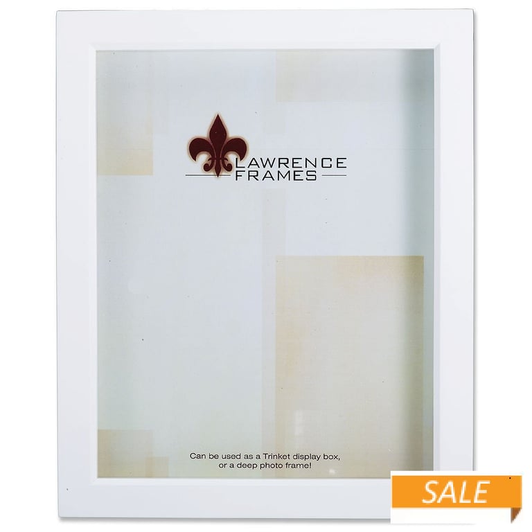 Product Details Lawrence Frames® White Trinket Box 5x7 frame ¾-inch depth — This is a beautiful shadowbox for memorabilia, miniature crafts, dried flowers - - - or your fine photo in a dramatic display. Classic simple white shadow box Constructed of wood with a satin finish; includes high quality black backing Holds your treasured items with ¾" of space inside Holds up-to a 5" x 7" photo, print, or piece Produced by Lawrence®. White Trinket Box 5x7 frame ¾-inch depth Lawrence® BLACK FRIDAY CELEBRATION Savings: Buy More / Save More * Add this item to your cart for the full details of this promotion. Conditions may apply. Model #751148065917 List $24.00 You pay $12.90 In stock Ships next business day [?] Your Price Match is Active Your request for a price of $0.00 for a minimum quantity of has been accepted. You have [time] left to purchase this item for $0.00 instead of $12.90 each. Find a Lower Price? We BEAT All Authorized Retailers [?] Approx. Overall Dimensions:5 1/8"x7 1/8"x1 1/4" SHARE THIS ITEM Share on Facebook