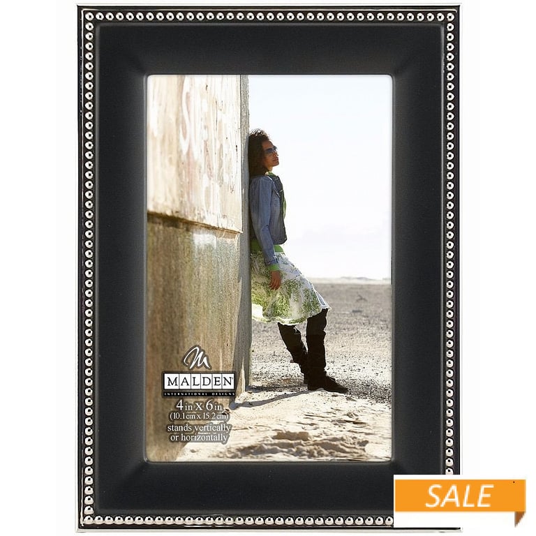 Product Details Malden Designs® 2-tone black frame with caviar bead trim by Malden® — This nicely crafted black frame style has simple construction and an elegant beaded trim.The caviar beading is uniquely on the outer edge of the moulding.Piece features tailored corners and fitted dual easel back for landscape or portrait tabletop use. Glare resistant glass lens.Produced by Malden®. 2-tone black frame with caviar bead trim by Malden® Malden Designs® HOLIDAY CELEBRATION Savings - ends SundayBuy More / Save More * Add this item to your cart for the full details of this promotion. Conditions may apply. Model #096287999878 List $17.00 You pay $9.90 In stock Can be shipped today [?] Your Price Match is Active Your request for a price of $0.00 for a minimum quantity of has been accepted. You have [time] left to purchase this item for $0.00 instead of $9.90 each. Find a Lower Price? We BEAT All Authorized Retailers [?] FEATURESDisplays:4"x6"Material:Metallic (all)Finish:Black, SilverOccasion:Business & office, Corporate gifts, Home decorating, Teacher gifts, Team & coach gifts, Thank-Motivate-Reward, Celebrating TravelsStyle:Antique, TraditionalOrientation:BothBrand:Malden Designs®Display Type:Desktop or Wall Approx. Overall Dimensions:6 1/8"x7 3/4"x1" This item ships in its own box SHARE THIS ITEM Share on Facebook
