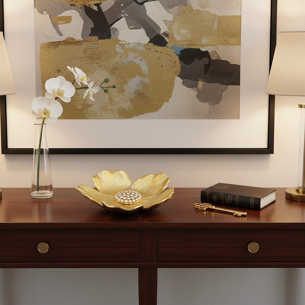 Main view Product Details Olivia Riegel Gold Botanica Catchall Bowl by Olivia Riegel® — Beautiful sculptural flower, inspired by the Rugosa Rose. Gold finished pewter catchall tray / candy dish with hand-set clear European crystals. Tarnish resistant. Signature luxury gift box included. An original design from the Olivia Riegel® collection. Gold Botanica Catchall Bowl by Olivia Riegel® OLIVIA RIEGEL® HOLIDAY CELEBRATION SAVINGS - Buy More / Save More * Add this item to your cart for the full details of this promotion. Conditions may apply. Model #850066618196 $165.00 This item IS in stock and can be expected to ship 01/16/2026 Your Price Match is Active Your request for a price of $0.00 for a minimum quantity of has been accepted. You have [time] left to purchase this item for $0.00 instead of $165.00 each. Find a Lower Price? We BEAT All Authorized Retailers [?] FEATURESMaterial:Gold vermeil (fine)Finish:Clear, GoldOccasion:Anniversary, Birthday, Christmas, Engagement, Friendship, Housewarming, Mother`s Day, RomanticStyle:OrnateBrand:Olivia RiegelDisplay Type:not applicable n/a Approx. Overall Dimensions:6 1/2"x1"x6 1/2" This item ships in its own box SHARE THIS ITEM Share on Facebook