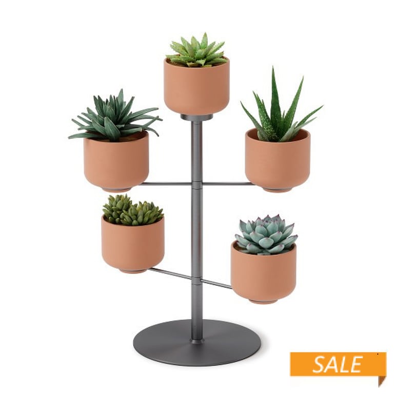 Main view Product Details Umbra® Design Terrapotta Tabletop Planter by Umbra® — A desktop planter with 5 terracotta pots, showcase a variety of your favorite small plants with Terrapotta. This modern planter features two metal bars which rotate 360 degrees, allowing you to show off your plants from different angles. MODERN DESKTOP PLANTER: This versatile desktop planter can be placed on any table, desk or countertop to add a pop of greenery TERRACOTTA POTS: Pots are made of fine terracotta, showing off a beautiful ceramic finish SPINNING BARS: With two spinning bars, 4 of Terracotta's pots can be swung or positioned 360 degrees WEIGHTED METAL BASE: Terrapotta features a weighted metal base and metal accents, ensuring it is durable and rust-proof To view the entire collection, click: Umbra® designs Terrapotta Tabletop Planter by Umbra® Model #028295356312 List $68.00 You pay $39.90 In stock Can be shipped today [?] Your Price Match is Active Your request for a price of $0.00 for a minimum quantity of has been accepted. You have [time] left to purchase this item for $0.00 instead of $39.90 each. Find a Lower Price? We BEAT All Authorized Retailers [?] FEATURESMaterial:Metallic (all)Finish:Gray/CharcoalOccasion:Business & office, Home decorating, Back to SchoolStyle:Scandinavian, Eco-Friendly-Recycled, Scandinavian, Eco-Friendly-Recycled, Architectural, College Dorm, ContemporaryBrand:Umbra® DesignDisplay Type:Wall Only Approx. Overall Dimensions:15"x15"x4 1/2" This item ships in its own box SHARE THIS ITEM Share on Facebook
