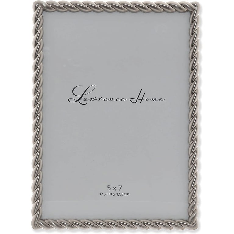 Main view Product Details Lawrence Frames® BRUSHED NICKEL ROPE 5x7 frame — A simple and elegant impressive silver frame with rope silhouette. Wonderful desk appeal; or use the wall mounts for easy hanging. Glare resistant glass lens.By Lawrence®, fine frames for generations. BRUSHED NICKEL ROPE 5x7 frame Model #751148085625 List $29.00 You pay $19.95 In stock Ships next business day [?] Your Price Match is Active Your request for a price of $0.00 for a minimum quantity of has been accepted. You have [time] left to purchase this item for $0.00 instead of $19.95 each. Find a Lower Price? We BEAT All Authorized Retailers [?] FEATURESDisplays:5"x7"Material:SilverplateFinish:SilverOccasion:Anniversary, Birthday, Business & office, Home decorating, WeddingStyle:Classic, Contemporary, TraditionalOrientation:BothBrand:Lawrence Frames®Display Type:Desktop or Wall This item ships in its own box SHARE THIS ITEM Share on Facebook